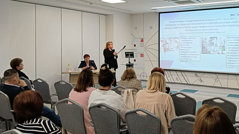 На мероприятии Наталья Иванова делала доклад на тему: "От чего зависит эффективность санитарно-гигиенических мероприятий"