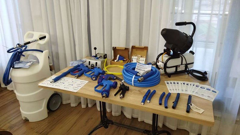 На выставке оборудования участники семинара познакомились с высокоэффективным инновационным генератором холодного тумана MU-10NV-3, мобильными пеногенераторами серии FOAM IT, высокопрочными гибридными шлангами PURFLEX.
