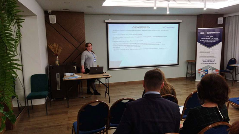 Специалист компании «Экохиммаш» Иванова Наталья Григорьевна осветила важные стороны санитарной обработки пищевых производств. Ответила на многие вопросы коллег, приводила многочисленные примеры из опыта работы нашей компании.